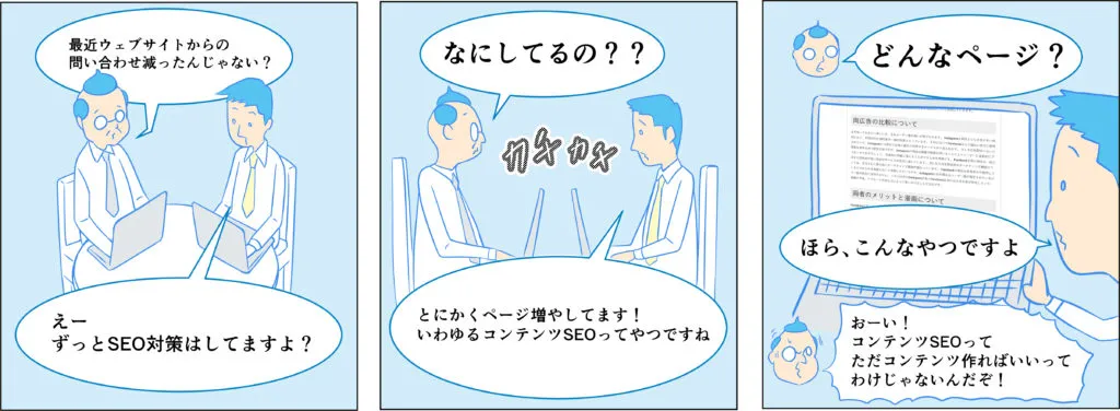 上司「コンテンツSEOって、ただコンテンツ作ればいいってわけじゃないんだぞ!」