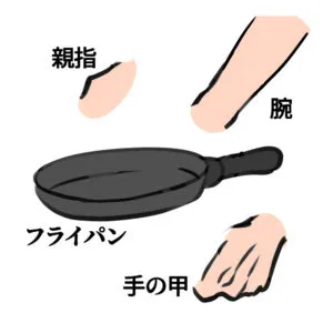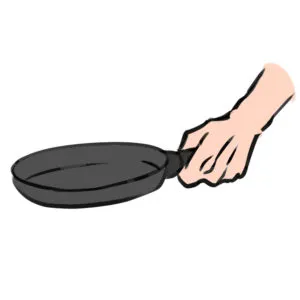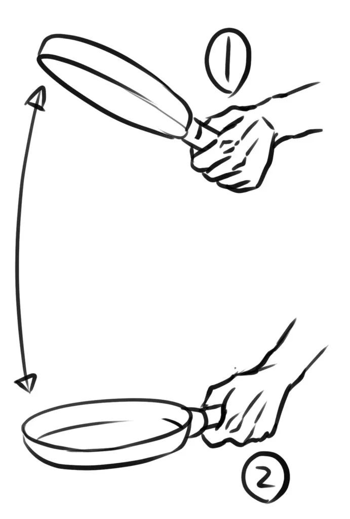 こういったかたちで、フライパンを上に上げてる絵と、下げてる絵を描きます。