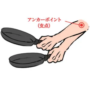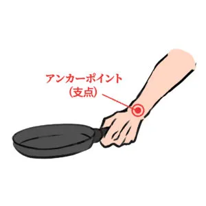 すると肘をアンカーポイント”支点”にすることによって、腕を上下に振ることができます。