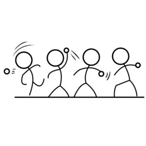パラパラ漫画では、前のコマをベースにしながら少しずつ動きをつけます。前のコマと共通した箇所がないと、一気にキャラクターの体勢が変化して、とびとびに見えてしまうからです。