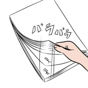 パラパラ漫画の目安は1秒につき4~5枚のイラストなので、1分の作品を作る場合には、約250~300枚ものイラストが必要になります。予定している長さに対応できる数の紙を用意することも重要ですが、それ以上に骨の折れる作業になることを覚悟しましょう。